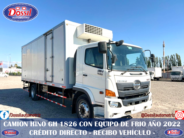 Camión HINO GH 1826, año 2022, Capacidad para 14 pallets, CarrocerÃa con equipo de FrÃo, valor $56.980.000. Consulte Crédito